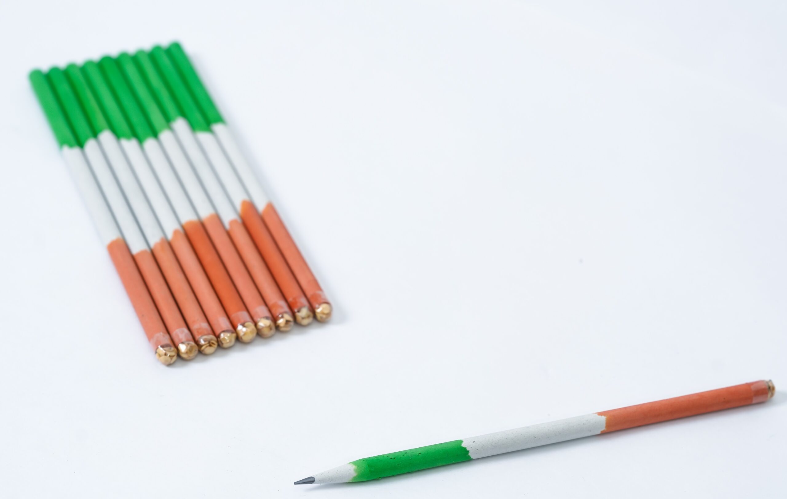 Inspired by the Indian tricolor, these pencils are made from recycled paper and are perfect for schools, events, and patriotic gifting.